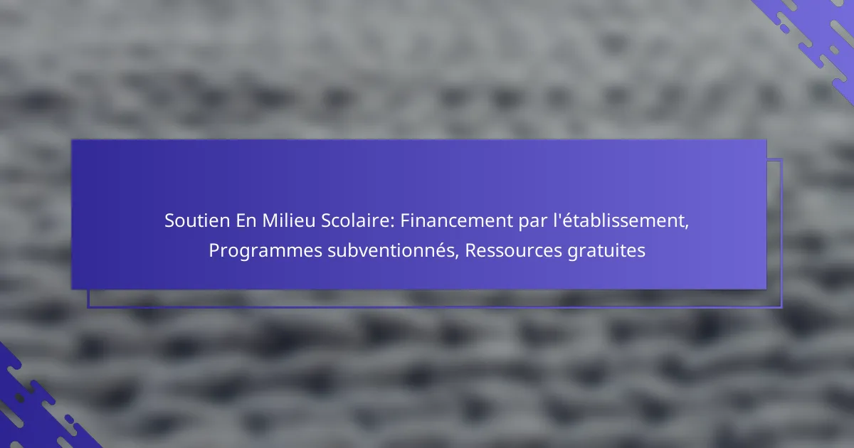 Soutien En Milieu Scolaire: Financement par l’établissement, Programmes subventionnés, Ressources gratuites