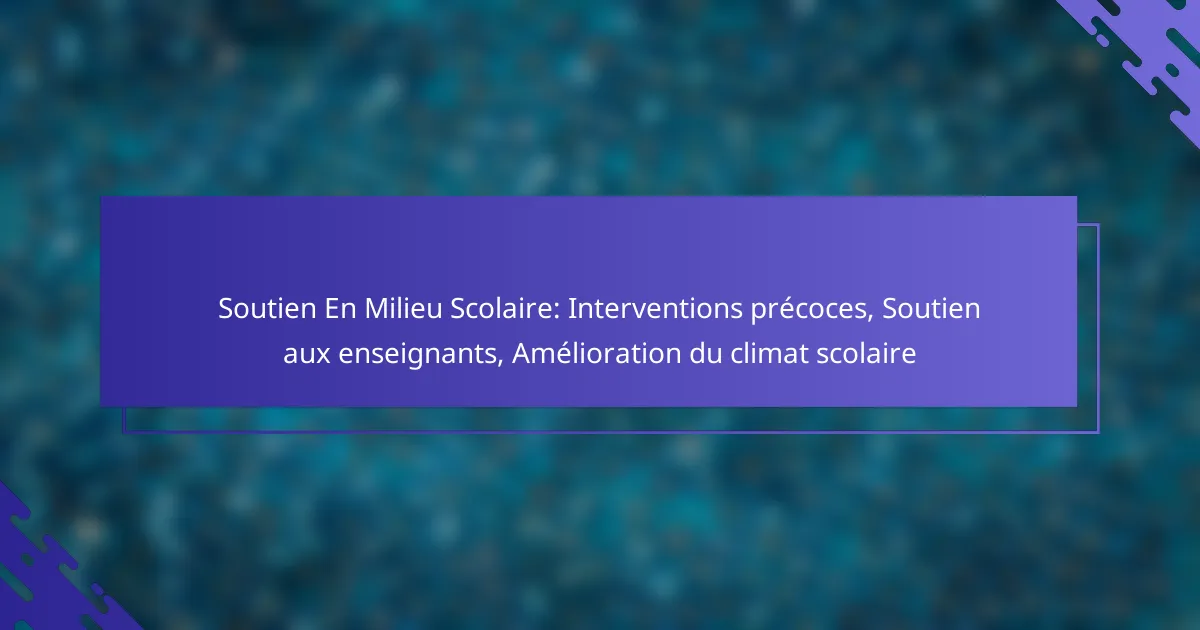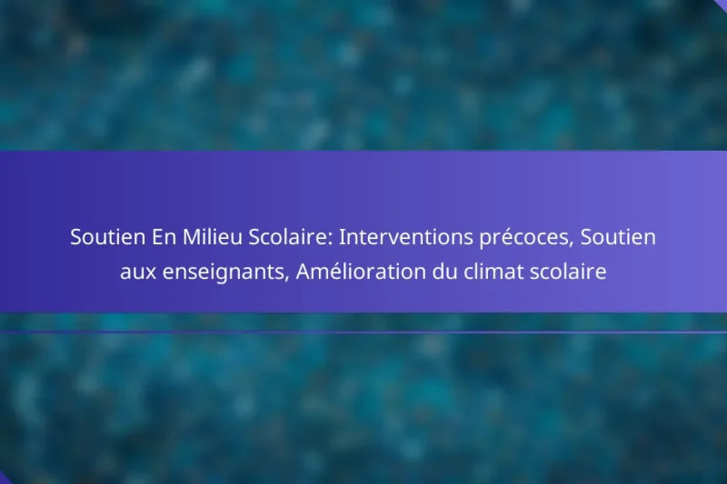 Soutien En Milieu Scolaire: Interventions précoces, Soutien aux enseignants, Amélioration du climat scolaire