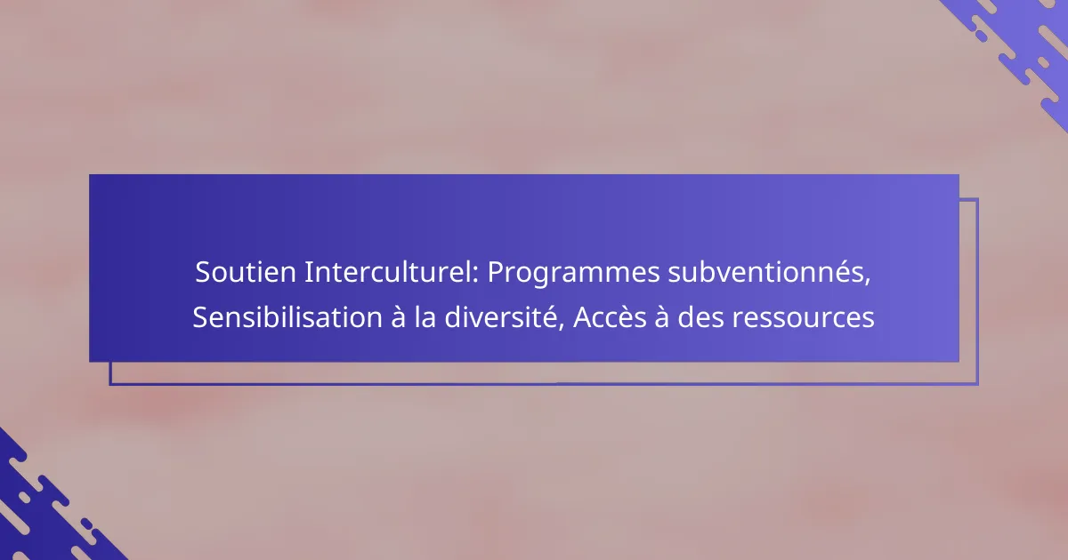 Le soutien interculturel comprend diverses ressources visant à promouvoir la diversité et l’inclusion. Ces ressources peuvent inclure des programmes subventionnés, des formations et des outils numériques qui facilitent la gestion de la diversité au sein des organisations.