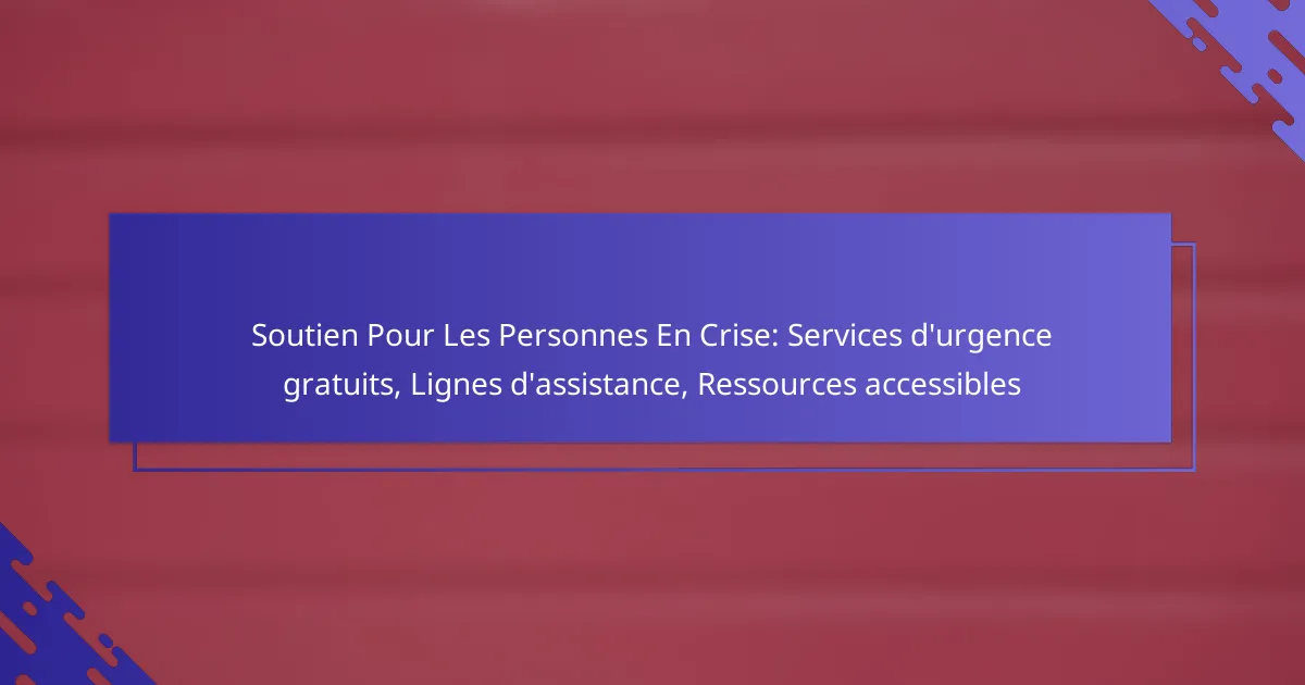 Les personnes en crise peuvent accéder à une variété de ressources gratuites, y compris des services d’urgence, des lignes d’assistance et des outils en ligne. Ces ressources visent à fournir un soutien immédiat et à orienter les individus vers des services adaptés à leurs besoins.