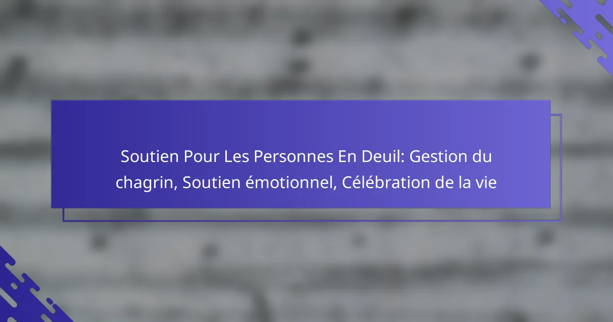 Le soutien pour les personnes en deuil est crucial pour traverser les défis émotionnels liés à la perte d’un être cher. Chaque individu vit le chagrin de manière unique, et il est important de reconnaître ce processus tout en offrant des ressources telles que des groupes de soutien et des thérapies. Célébrer la vie de ceux qui nous ont quittés peut également apporter du réconfort et honorer leur mémoire à travers des rituels et des souvenirs partagés.