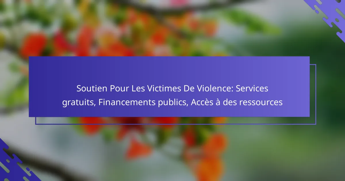 Les victimes de violence disposent de nombreux services gratuits qui leur fournissent un soutien indispensable, allant de l’aide psychologique à l’assistance juridique. En outre, des financements publics sont disponibles pour les aider à faire face à leurs besoins immédiats, tels que les soins médicaux et l’hébergement temporaire. Diverses ressources, y compris des plateformes en ligne et des organisations communautaires, sont également accessibles pour offrir des informations et un accompagnement adapté.